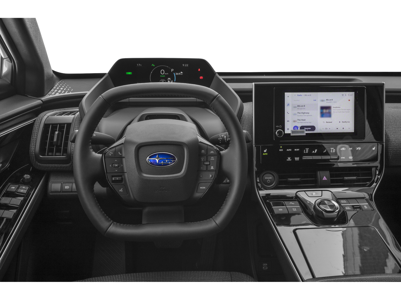 - Radio: Subaru 8.0" Multimedia System -inc: navigation system (navigation subscription required), AM/FM HD radio, Bluetooth® audio streaming and hands-free phone connectivity w/SMS text messaging (refer to subaru.com for cell phone compatibility), SiriusXM all access radio (4 months free trial included/subscription required after), Android Auto and Apple CarPlay w/full screen view and wireless connection, 6 speakers, multi-touch gesture high resolution display screen, Subaru Solterra Connect intelligent assistant includes dual-zone voice control system w/driver and passenger headliner microphone, steering wheel talk switch, cloud navigation operation and integrated steering operation (subscription required), USB/Over The Air (OTA) audio system updates, USB/Map Over The Air (MOTA) navigation system updates, steering wheel control switches for audio system and Bluetooth®, USB A input/charge port and illuminated dual USB C input/charge port