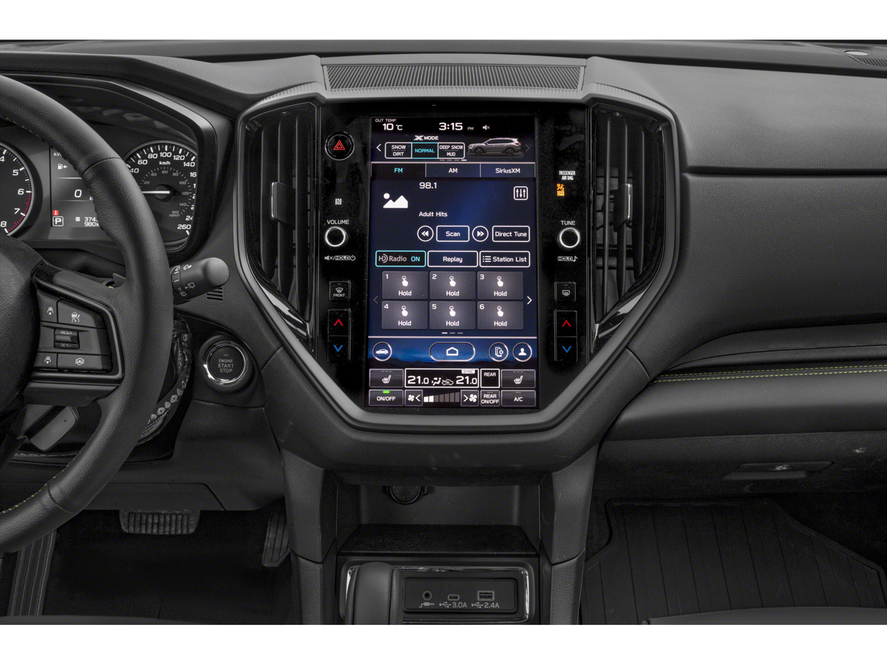 - Radio: Subaru 11.6" Multimedia Plus System -inc: AM/FM stereo HD Radio, multi-touch gesture high resolution display screen, voice activated controls, Bluetooth® audio streaming and hands-free phone connectivity w/SMS text messaging connectivity (refer to subaru.com for cell phone compatibility), Near Field Communication (NFC), iPod control capability, smartphone integration for Android Auto and Apple CarPlay w/full screen view and wireless connection, USB and Over The Air (OTA) audio system update, steering wheel control switches for audio and Bluetooth®, 6 speakers, 3.5mm illuminated auxiliary input jack, illuminated USB A and C input/charge ports, SiriusXM w/360L (4 months free trial included/subscription required after) and SiriusXM Travel Link (4 months free trial included/subscription required after)